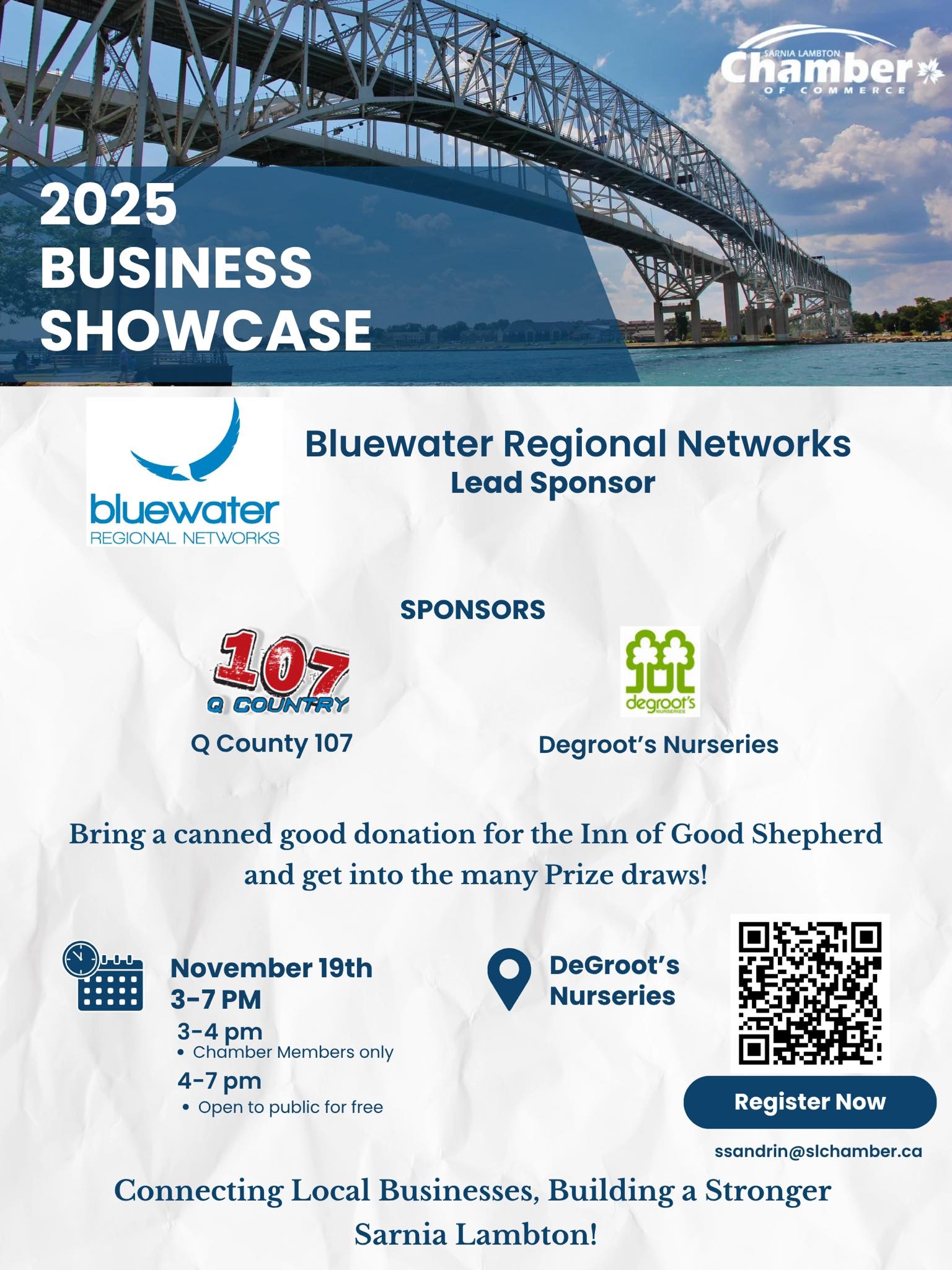 📍 Location: Chamber’s Annual Business Showcase, proudly sponsored by Bluewater Regional Networks Inc.